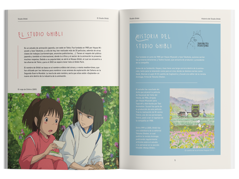 Librillo sobre qué es, su historia, su lista de películas, el arte y el realismo mágico que contiene el universo del Studio Ghibli. Todas las imágenes utilizadas en el librillo son originales de la página web del Studio Ghibli.